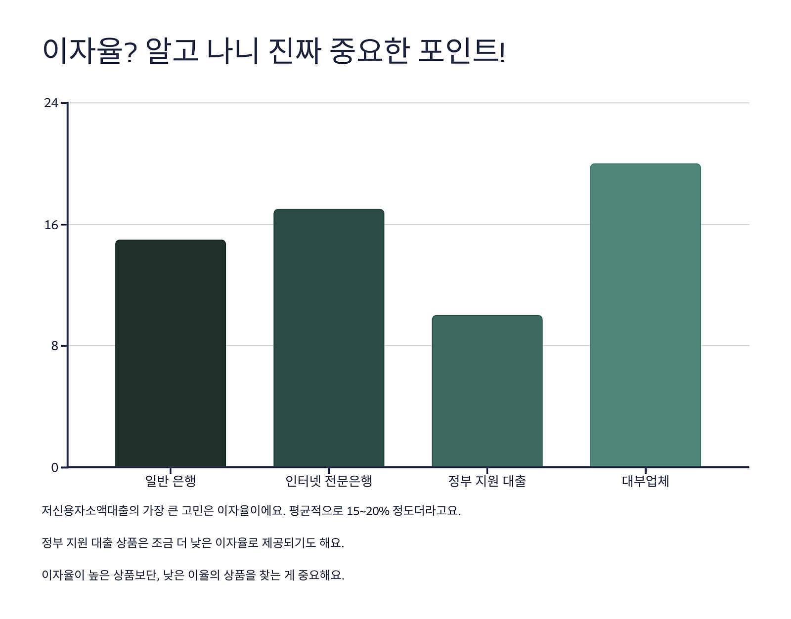 저신용자소액대출을 생각할 때 제일 큰 고민은 아무래도 이자율이 아닐까 싶어요. 제가 대출을 알아볼 땐 한 금융기관에서 대출을 제안했는데 이자율이 너무 높아서 망설였던 적이 있어요.