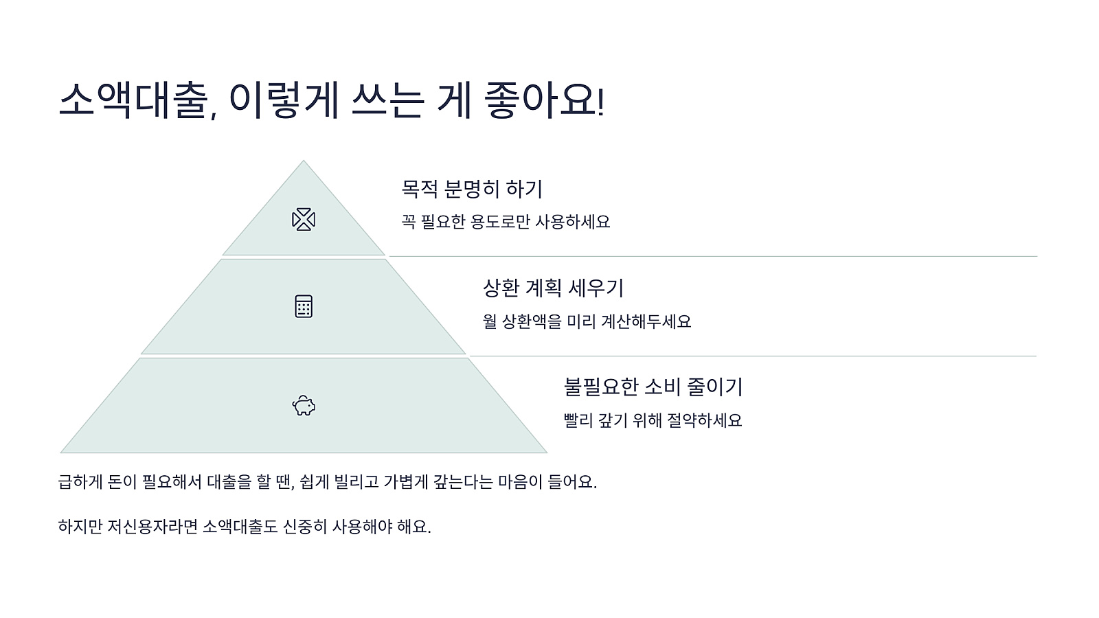 급하게 돈이 필요해서 대출을 할 땐, 쉽게 빌리고 가볍게 갚는다는 마음이 드는 경우가 많아요. 하지만 저신용자소액대출도 신중히 사용해야 해요.
